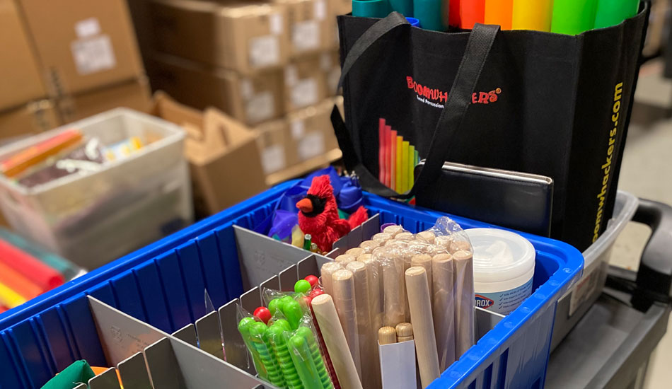 Before the year begins, think about the tried and true things that you’ve used in your music classroom. Even though you’re on a cart now, they are probably the same. For me, these are the instruments/materials that I knew I used pretty often: