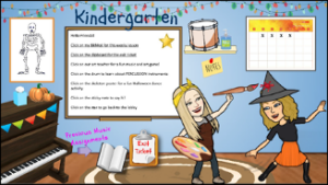 In a shared online learning space such as Google Classroom, we are often limited to posting ONE item for a lesson. And if we can assign multiple things, often it is overwhelming for families at home? In this example of the BitMoji room, there are seven active links, similar to the number of activities students do in a typical music class. “Click on the drum to learn about percussion instruments,” “Click on the clipboard for the exit ticket.” The beauty of this “room” is that there is only one link for families to follow. However, there are multiple resources at their fingertips. Not only is it one link for families, the link never changes, no matter how many times your “classroom” is edited.