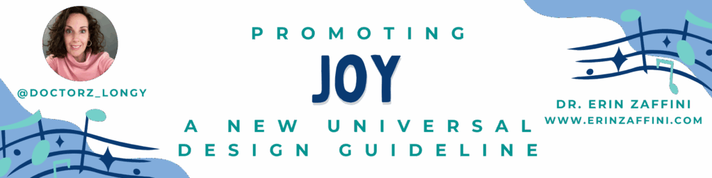 If you’ve been following updates from CAST and the evolving world of Universal Design for Learning (UDL), you may have noticed an exciting new addition to the framework in the summer of 2024—a guideline focused on joy. That’s right: joy is no longer just a welcome byproduct of good music teaching—it’s now a central principle of inclusive design. And if you’re a music educator, you’re in a uniquely powerful position to bring this to life.