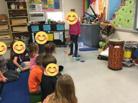 • “The conductor” conducts the class by jumping on various discs.