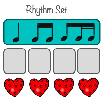 We begin by providing students with a known rhythm set and a visual of beats. The visuals allow students to see all the components they can use to improvise. I consider this activity a hybrid of reading and improvising.