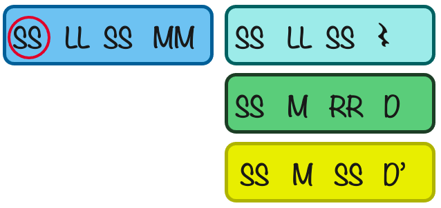 An extension of the above activity gives melodic choices for students to read – reinforcing responding on time. Providing patterns that are familiar and limiting the number of options is a great way to begin. The circled pitches of the question indicate that the answer needs to start with the same pitches.