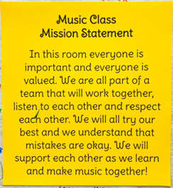 Mission statements reflect the values of your classroom including classroom culture, relationships between students, expectations of individuals, and goals of your classroom/program. This is an opportunity for students’ voices to be heard as they help craft the mission statement. At the beginning of the year, I take suggestions from each class and summarize common ideas to craft our mission statement. Then every student signs our mission statement once it’s finalized!