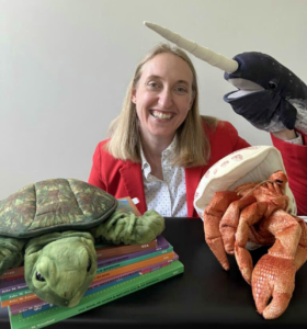 Movement is a component of my classes, and puppets provide concrete examples to support students uncomfortable with new activities, solo singing, or movement. The shared understanding of how animals move helps create a vocabulary from which we can scaffold our musical understanding. One example is when my classes engage with Camille Saint-Saën’s “Aquarium” from “Carnival of the Animals”; I use ocean creatures to give direction regarding ways to move to the music. The octopus and shark move differently and help students explore the melodic direction, rhythm, and tempo. We discuss how the students interpret the animal movement uniquely while being grounded with visual examples which provide reference and structure.