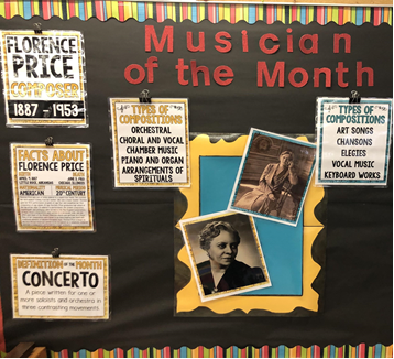 Incorporating a musician of the month broadens student knowledge about a variety of different musical artists. Use this opportunity to shape student’s perception of music history and consider featuring underrepresented composers.