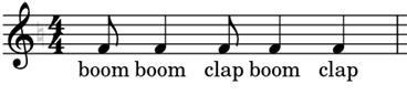 This game originally is just about listening– I incorporate rhythms that we are learning in the patterns that we do for “boom” and “clap.” For example, if we are learning syncopation I might say a pattern such as this to prepare students for learning the new rhythm concept.