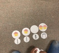I have various sets to use with different grade levels, depending on what rhythms they know so far. When we play, I split students into two teams. Each team has a set of 6 water bottles.