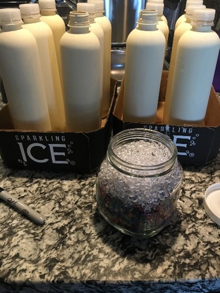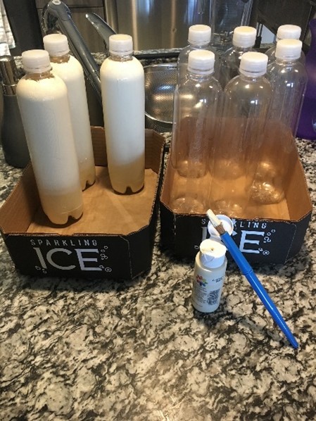 Bowling is a fun activity that helps reinforce beat values at any grade level using appropriate rhythm, especially rests. I take empty water bottles, paint them white, fill them with ¼ cup – ½ cup of beads for weight, and write rhythms on each in black sharpie.