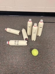 Students use a tennis ball as their bowling ball. To keep score, students add up the beat value of the pins that they knocked down on during their turn.  (see example in pictures below) This game is a fun way to have students practice differentiating between counting beats and counting syllables.
