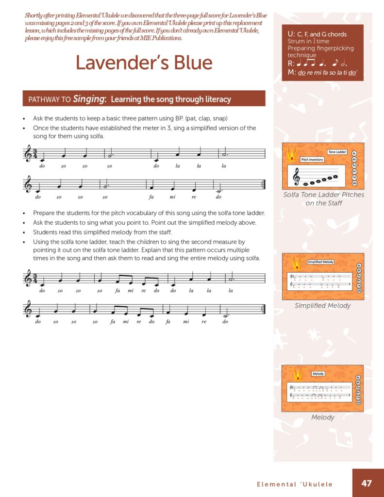 The ukulele can be used for more than strumming while students sing. The resources below add the ukulele to individual lessons with singing games, Orff ensembles, children’s literature, recorders, body percussion, and more. As a bonus, each resource has a downloadable example of a lesson from their book!
