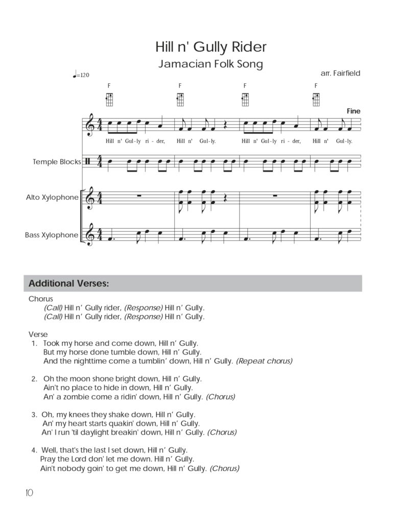 This publication is a compilation of orchestrations featuring the ukulele. The arrangements in this book allow students to practice ukulele skills within the context of a larger ensemble. Teachers with only a limited number of ukuleles will find this publication particularly useful because the lessons feature multiple ways for students to participate in music-making. The orchestrations are adjustable to fit each classroom’s needs, allowing the teacher to remove parts or change the instrumentation. Songs range from single chords to three-chord accompaniments using varied strum patterns. This resource includes digital files and is recommended for grades four and up.