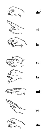 Solfège is an invaluable aid in building all musical skills with Kodály. Expanding upon the 11th-century Guidonian method of solmization and utilizing American John Curwen’s hand movements, solfège allows the student to audiate and create spatial connections in music. Hand signs help visualize intervallic relationships. In addition to music reading and writing which are begun at an early stage of musical education, the following skill areas are also developed: part-singing, part-hearing, improvisation, intonation, listening, memory, phrasing, and understanding of form.